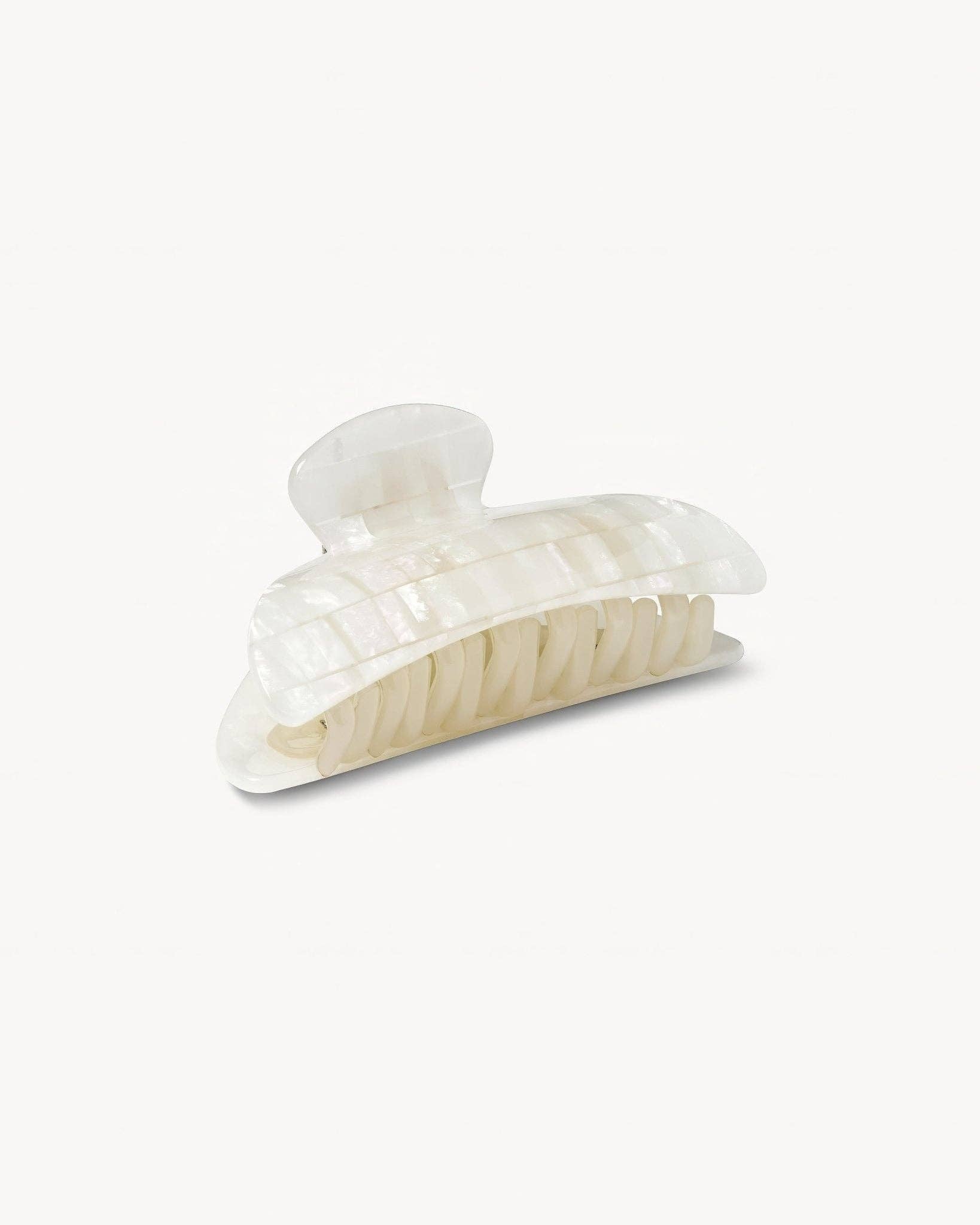 A double-walled hair claw designed to hold medium volumes of hair, handcrafted from Italian acetate with reinforced hardware. Recommended for all hair types and textures.